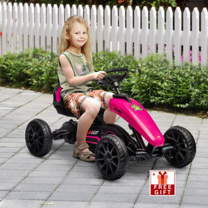 The Kids Ride-On Toy Pedal Go Kart is a versatile and durable go-kart, ride-on car for children aged 3-8. It features an adjustable seat that grows with your child, ensuring a comfortable fit for years of fun. With forward and reverse drive, a hand brake for easy stopping, and shock-absorbing wheels, this pedal-powered ride-on go-kart offers a smooth and stable ride on various surfaces. Powered by pedals, it promotes physical activity and helps develop motor skills. Safety is ensured with ASTM F963 and CPSIA qualifications. Easy to operate and assemble, this ride-ons provide hours of outdoor entertainment for your child.
