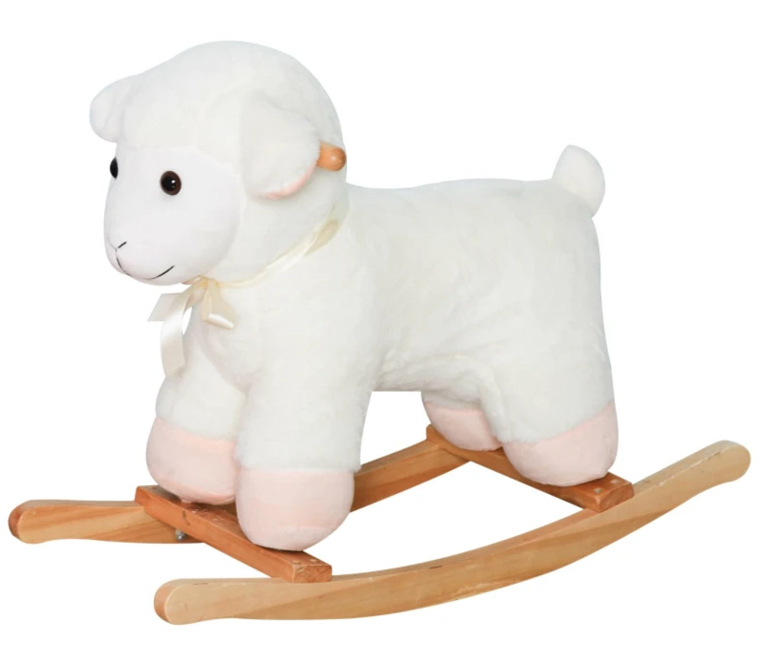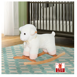 Lamb Rocking Horse Sheep, Nursery Stuffed Animal Ride On Rocker for Kids, Wooden Plush, White