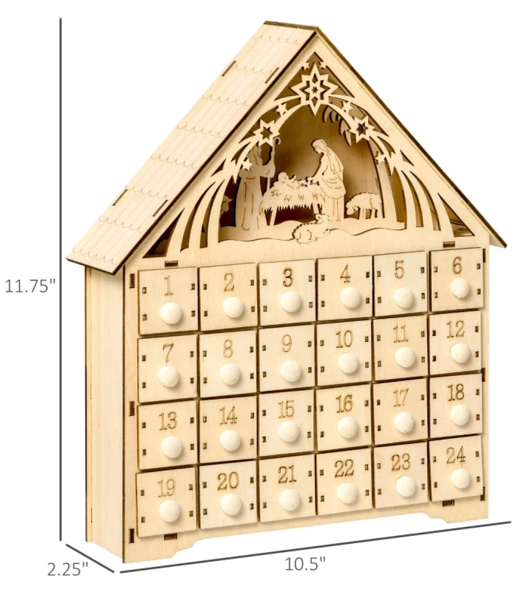 Light-Up Christmas Advent Calendar with Manger Scene & Countdown Drawers for Kids and Adults
