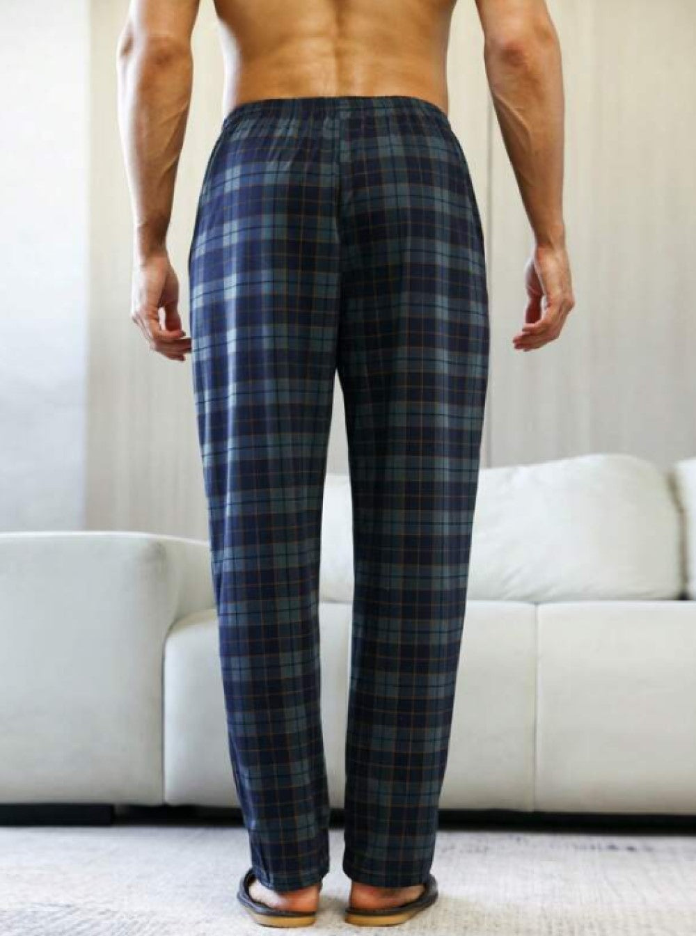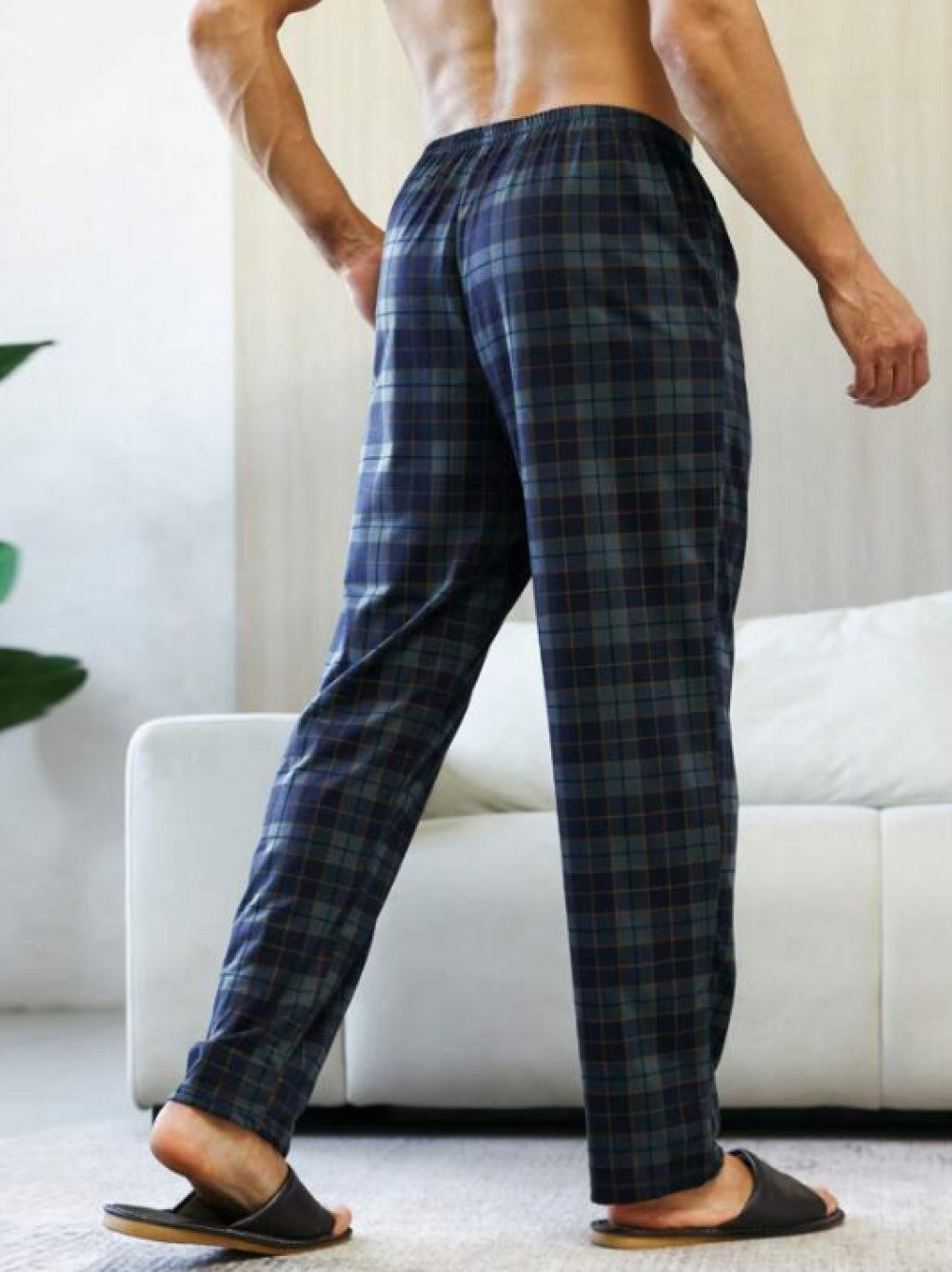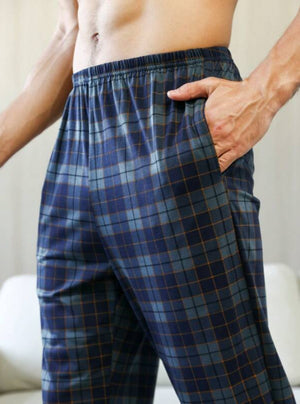 Men Plaid Print Slant Pocket Sleep Pants