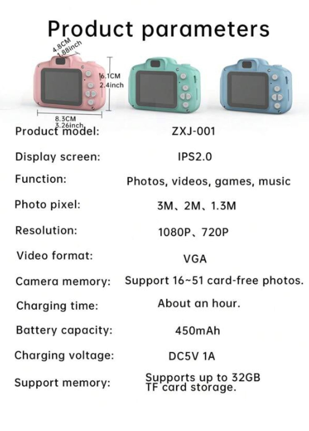 Mini Kids Digital Camera HD Cartoon Can Take Pictures Kids Mini Kids Camera Toy Kids Birthday Present Gift Box Gift For Birthday/Easter/Boy/Girlfriend
