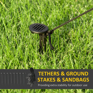 · Includes 8 stakes, 8 drawstrings, and a sandbag to keep it stable in windy outdoor conditions
