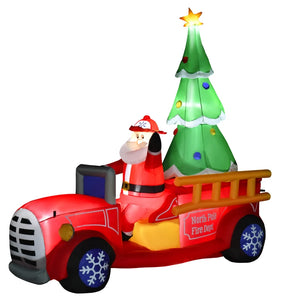 HOMCOM 7.5FT Christmas Inflatable Santa Driving Fire Truck with Tree | LED Yard Decor