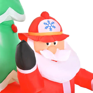 The HOMCOM 7.5FT Christmas Inflatable Santa Claus Driving Fire Truck with Tree is a festive outdoor Christmas decoration that features Santa in a fire truck with a beautifully decorated Christmas tree. Equipped with 6 B2 LED lights, this inflatable creates a vibrant holiday display. It automatically inflates for easy setup and includes 8 plastic stakes, 4 metal stakes, and 4 drawstrings for stability. Made from weather-resistant polyester with IP44 certification, it's ideal for indoor and outdoor use. Deflates easily for convenient storage. Perfect for Christmas lawn decorations.