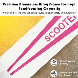 · Premium Aluminum Alloy Pedal: The folding scooter made of durable aluminum alloy and is strong enough to support a weight of 220lbs. Therefore, children aged 10 and above can use our scooter without worrying about quality issues.
