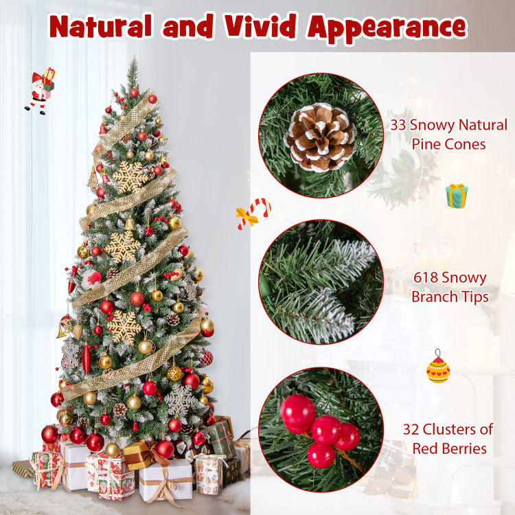 Elevate your holiday decor with our Pre-Lit Pencil Christmas Tree with Pine Cones & Red Berries, available in 5, 6, and 7 feet options. This lifelike artificial Christmas tree features lush branch tips and classic decorations, including pine cones and red berries, creating a festive atmosphere. With 250 warm white lights, it provides cozy illumination, perfect for any indoor or outdoor setting. Easy to assemble with hinged branches, this tree is crafted from flame-retardant, fade-resistant PVC for lasting use. Ideal for homes, offices, and shops, this is one of the best pre-lit Christmas trees for creating cherished holiday memories. Transform your space with this stunning centerpiece!