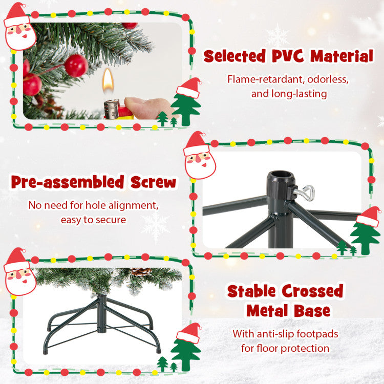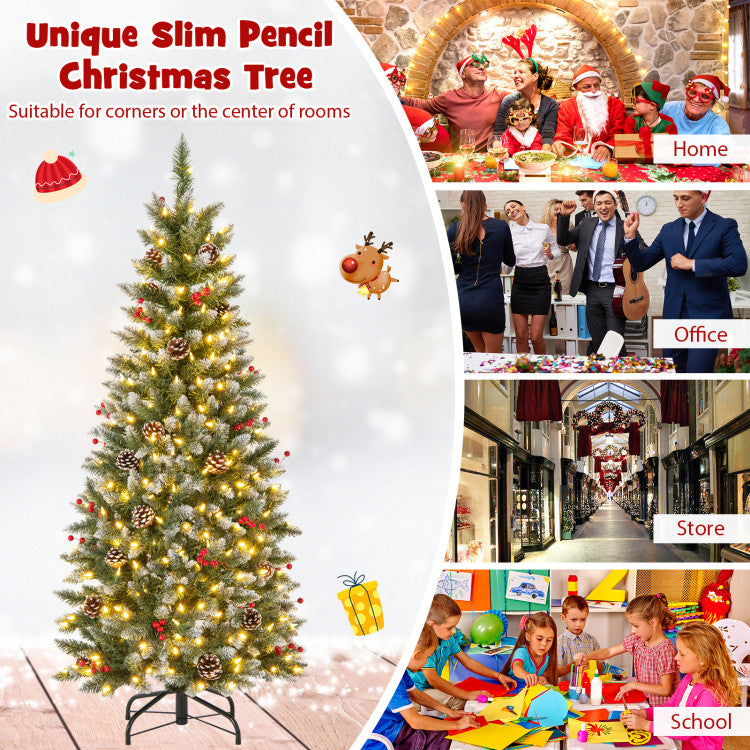 - Realistic Design: The 5ft Pre-Lit Pencil Christmas Tree features 408 dense branch tips for a lush, lifelike appearance, complete with decorative pine cones and red berry clusters for added charm.