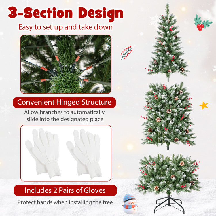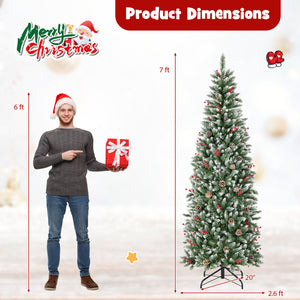 Pre-Lit Pencil Christmas Tree with Pine Cones & Red Berries – 5/6/7 Feet Options