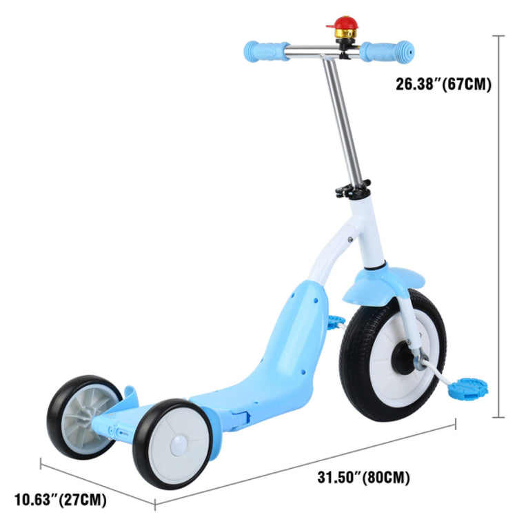 The 2 in 1 Toddler Tricycle Balance Bike Scooter is a versatile and durable toy for kids aged 3 to 5 years old. It combines the stability of a tricycle with the mobility of a balance bike and a scooter, and is crafted from durable steel and PP plastic. The adjustable height with three speeds allows the toy to grow with your child, and the bright blue color is sure to catch their eye and make them excited to ride.
