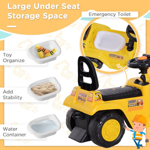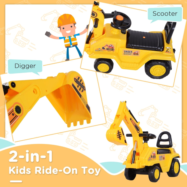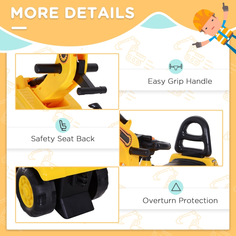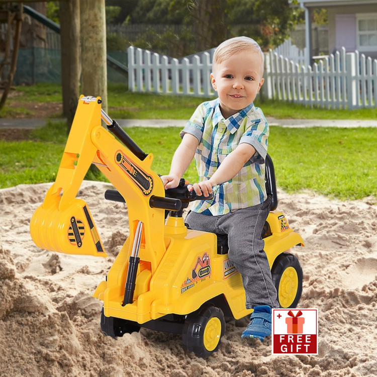 Transform your child's playtime into an exciting construction adventure with our Ride-On Excavator Pull Cart. This versatile tractor ride on toy allows kids to explore and imagine themselves on a real building site. With a big digging bucket, they can scoop up dirt, sand, and other materials, enhancing their imaginative play. The power wheel tractor under-seat storage provides a convenient space for them to bring along their small toys on their adventures, whether indoors or outdoors. Watch as your child's creativity and motor skills flourish with this engaging and fun construction power wheel tractor. Suitable for ages 1 and up.