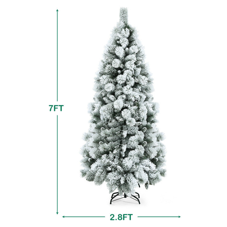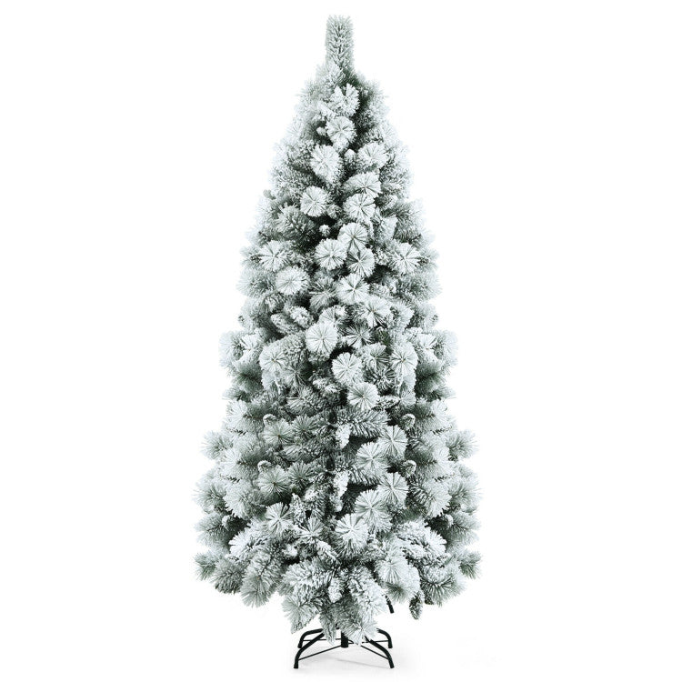 · Realistic snow-flocked artificial Christmas tree with 470 PVC branch tips and pine needles