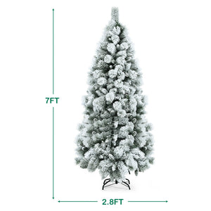 Slim Flocked Hinged Artificial Christmas Tree with Pine Needles - Elegant Holiday Decor