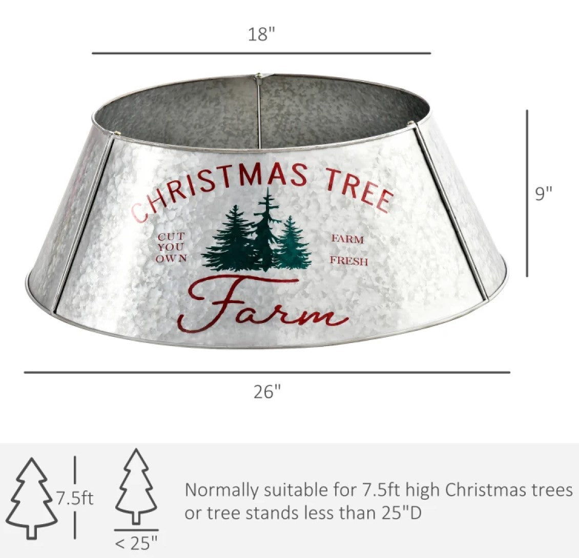 Steel Christmas Tree Collar Ring Skirt, 26" x 26" x 9", Festive Holiday Decor