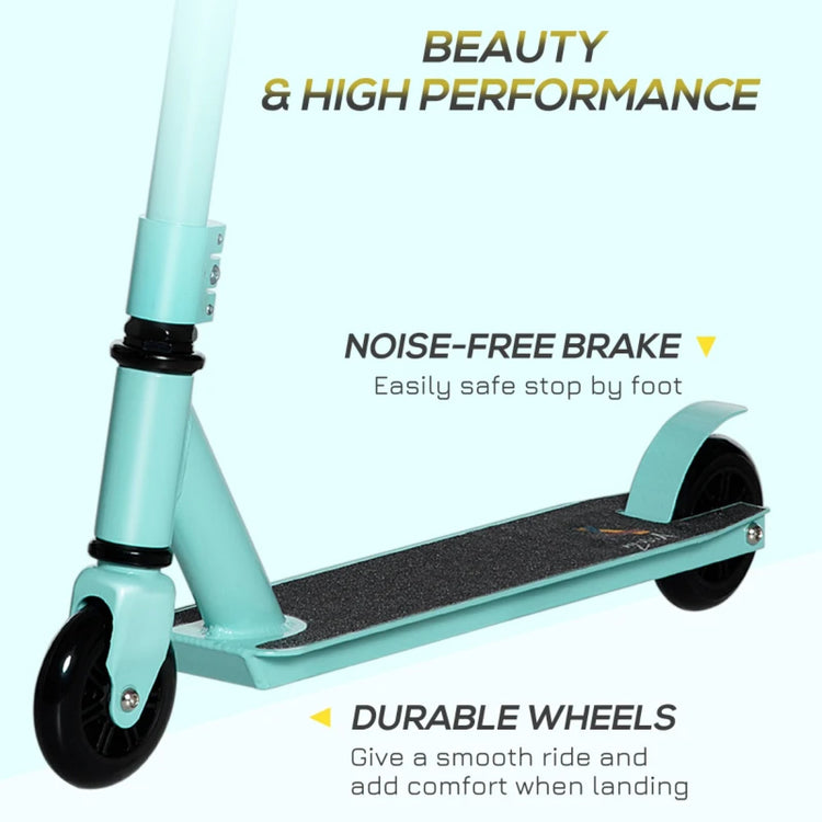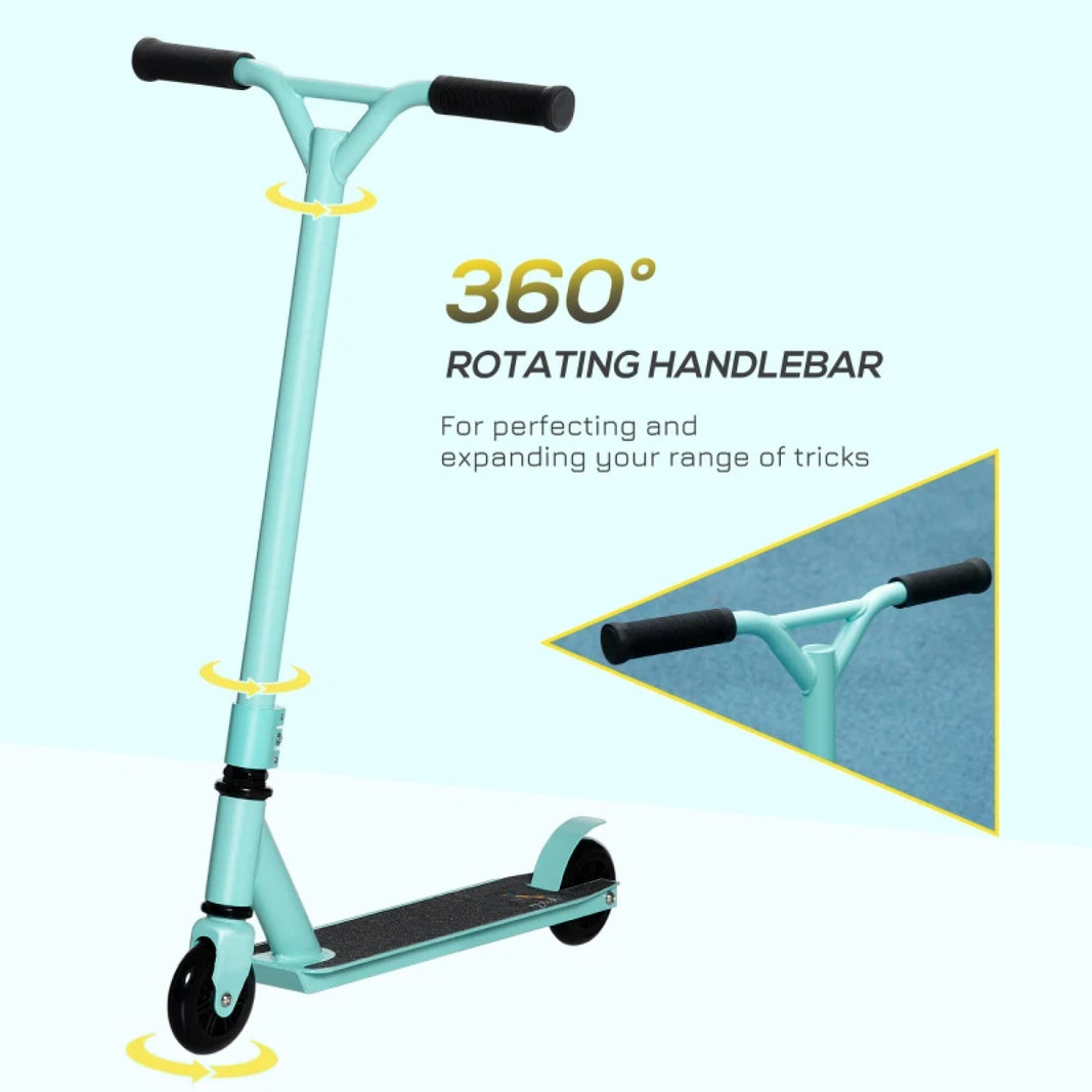 Equipped with ABEC-7 bearings, this trick scooter ride-on toy offers fast acceleration for high-speed thrills. The rear-wheel fender-braking system ensures safe stops, even at stunt speeds, allowing you to ride with confidence. The handlebars swivel 360°, expanding your range of tricks and keeping the fun going.
