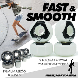 Our skateboard is tailored to meet the needs of young aspiring skaters who are looking for their first board. However, adults and advanced skaters looking for a smaller ride have also enjoyed cruising on this board. The rock-hard maple deck offers extra comfort while skating, thanks to its shallow concave. The deck is equipped with double kick tails, providing ample pop for tricks and stunts. The board comes fully assembled, making it a perfect gift for any young skater looking to start their skating journey.