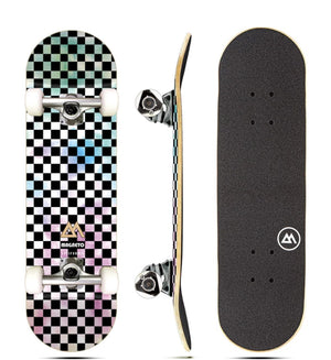Our skateboard is tailored to meet the needs of young aspiring skaters who are looking for their first board. However, adults and advanced skaters looking for a smaller ride have also enjoyed cruising on this board. The rock-hard maple deck offers extra comfort while skating, thanks to its shallow concave. The deck is equipped with double kick tails, providing ample pop for tricks and stunts. The board comes fully assembled, making it a perfect gift for any young skater looking to start their skating journey.