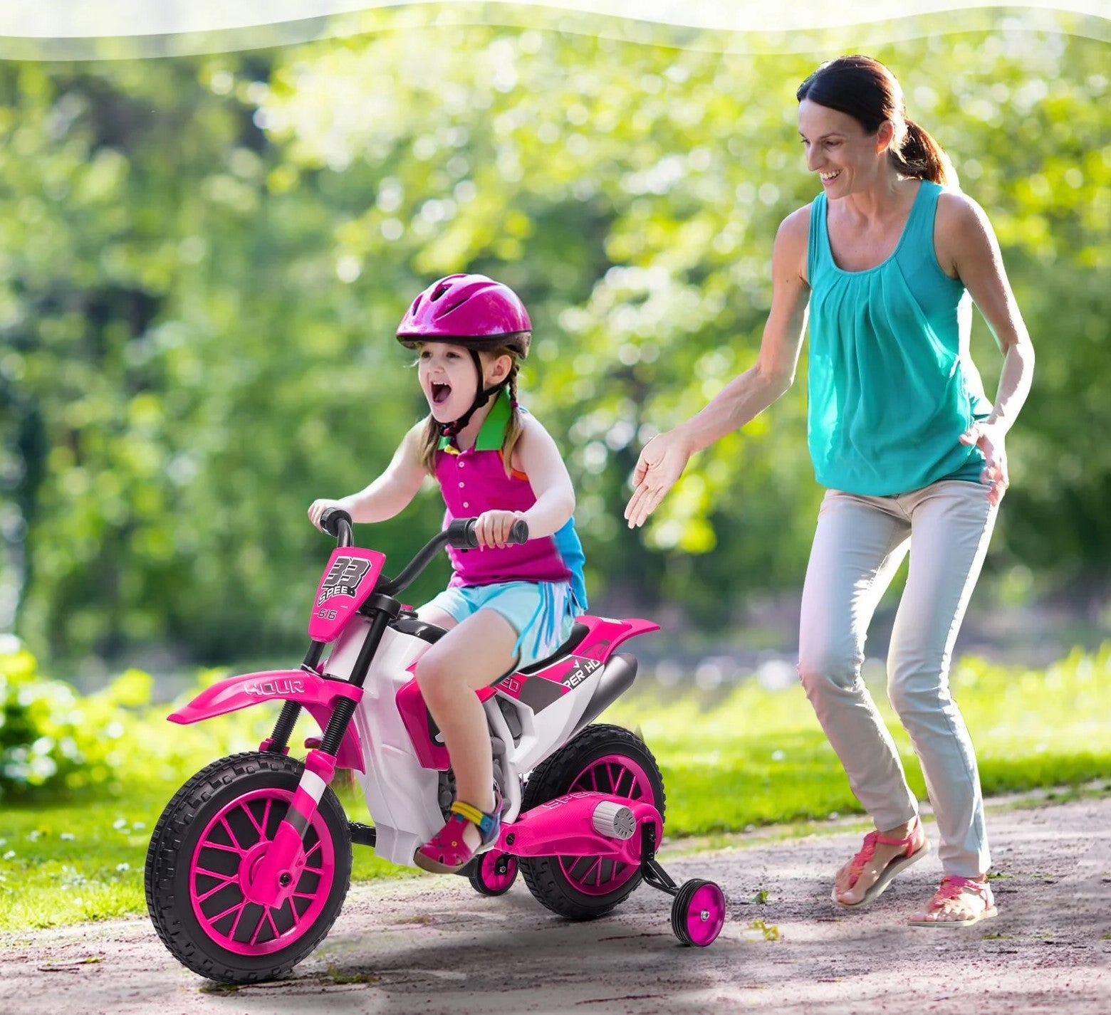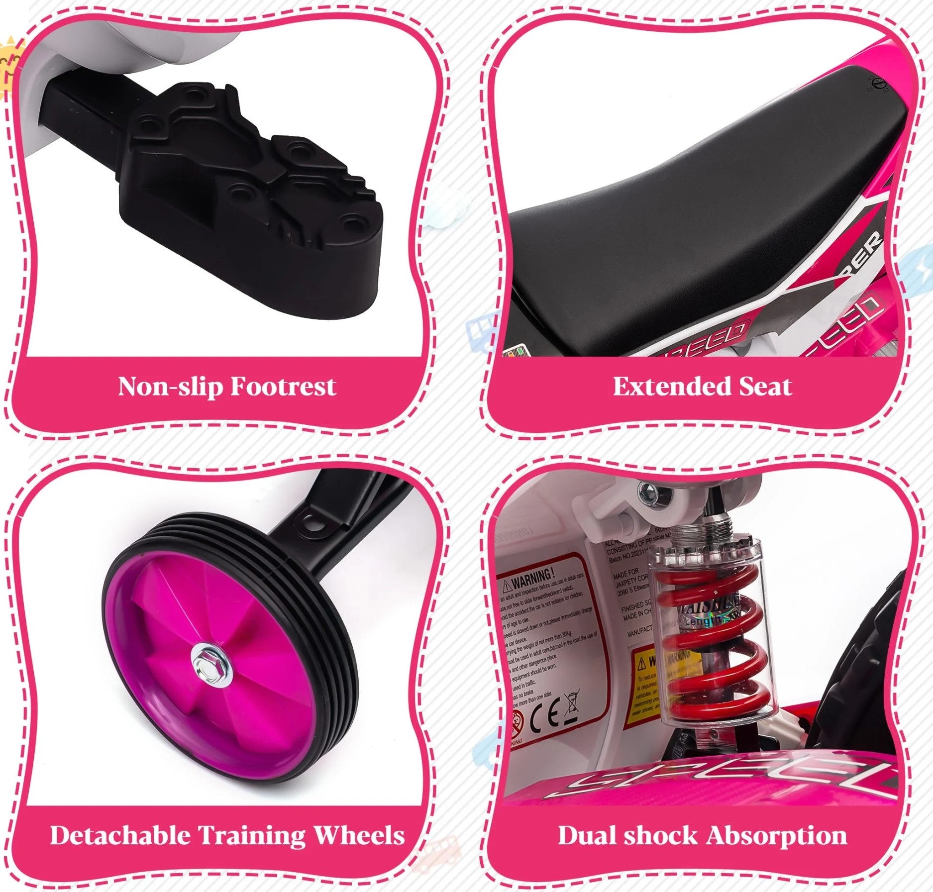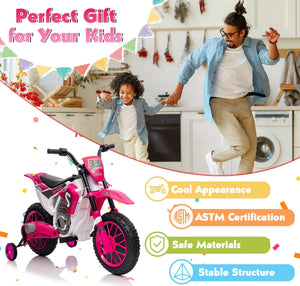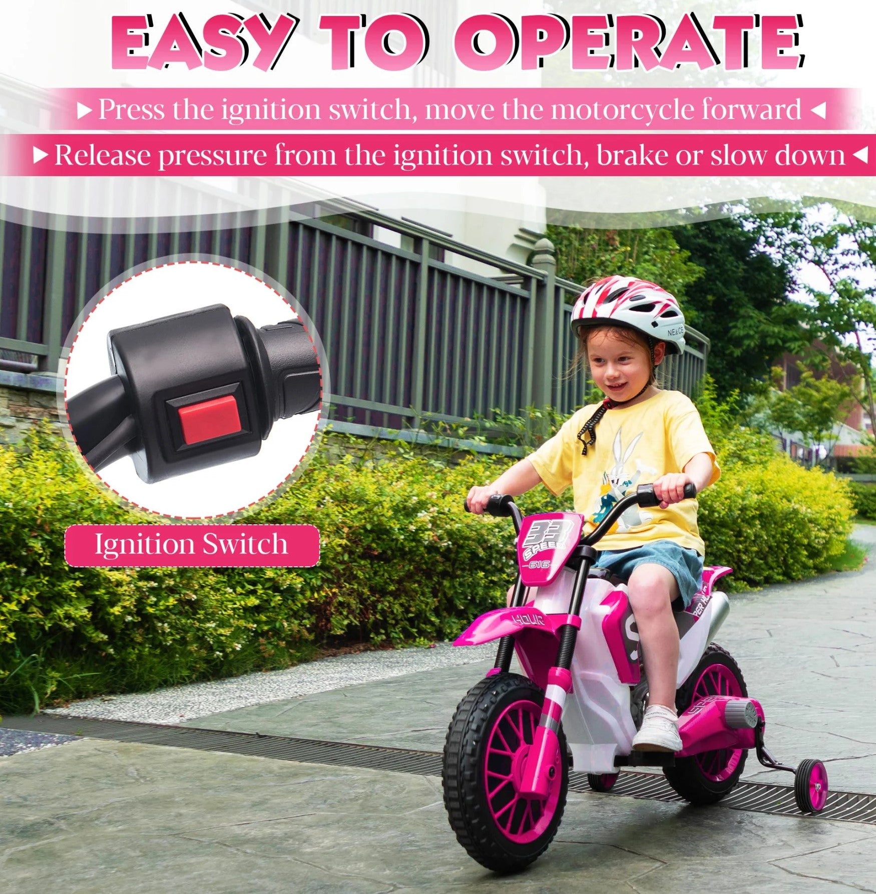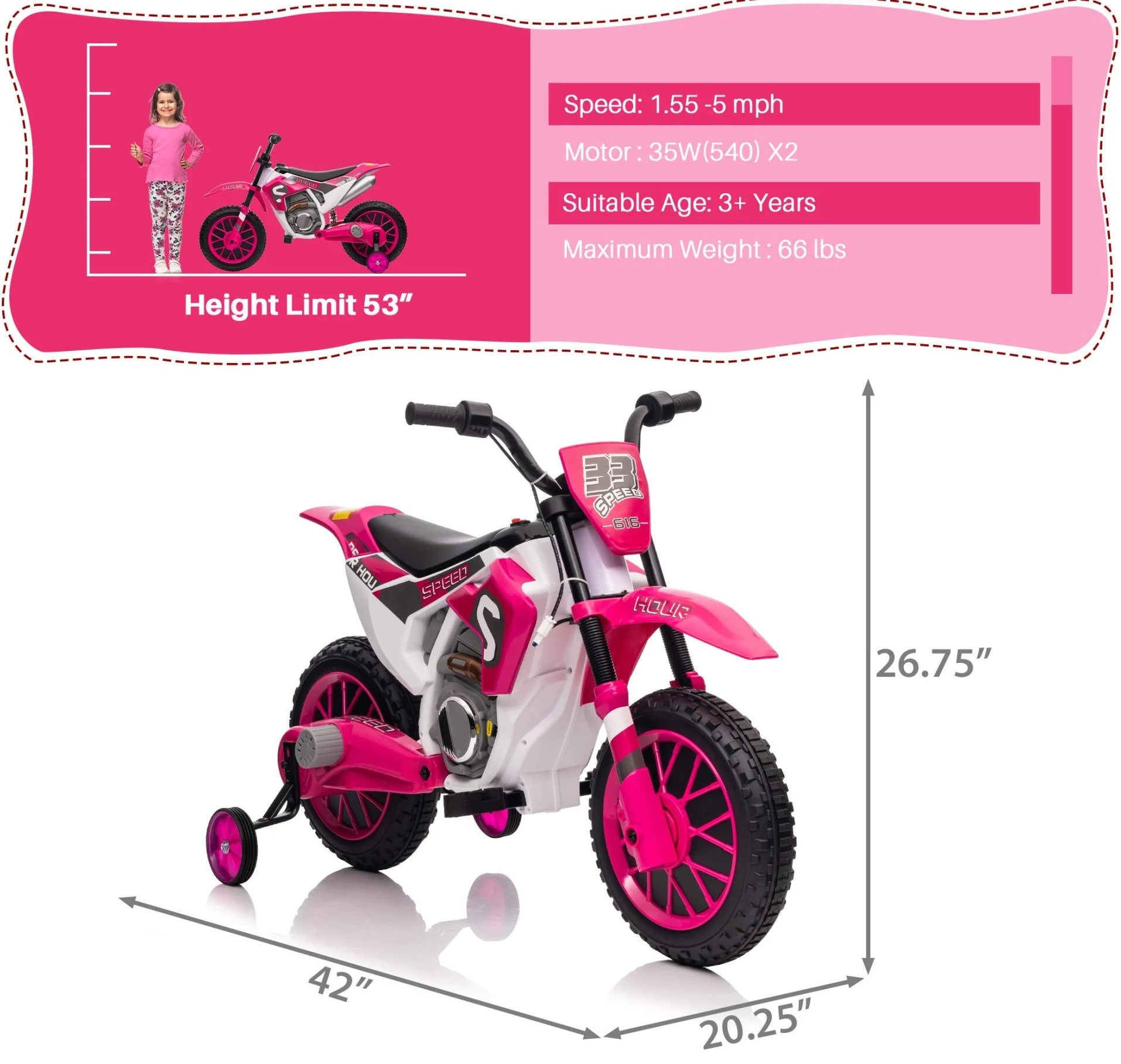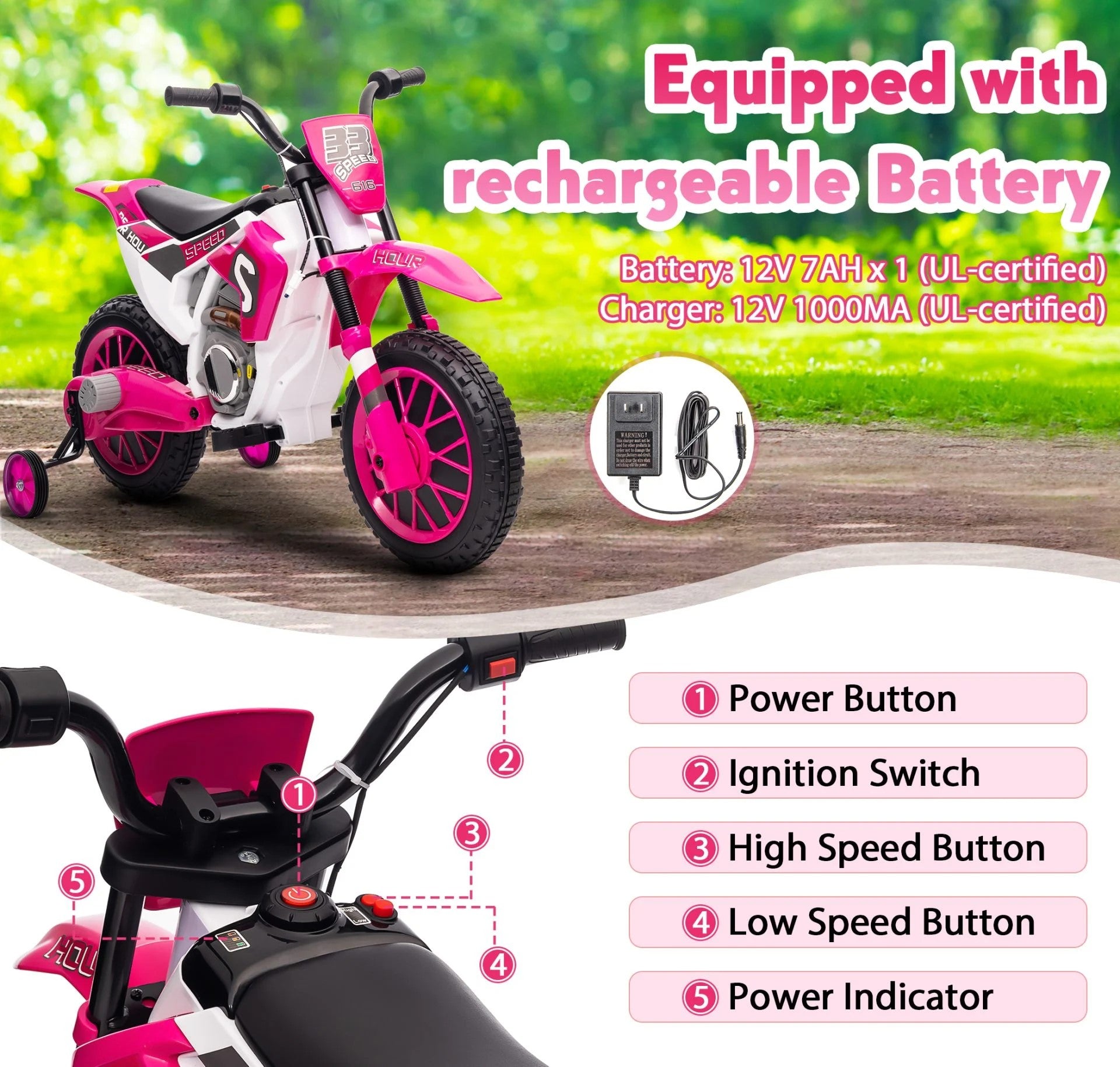 Tobbi 12V Electric Kids Dirt Bike Off-Road Motorcycle with Training Wheels, Battery Powered Kids Ride On Toy Bike - Toys Ride on, Toys Ride Motorcycle Rose Red