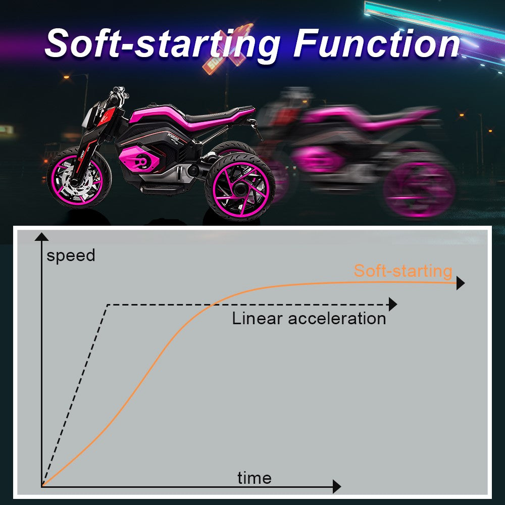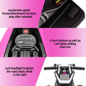 The motorcycle has a soft-start feature and safe key start to ensure that your child can operate it safely. The forward and back buttons offer versatile movement options, allowing your child to ride the motorcycle in any direction they choose. The non-slip pedal ensures that your child's feet stay in place while they ride.