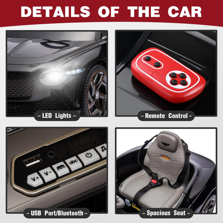 - Realistic Bentley Licensed Ride-On for Kids: Experience luxury driving with the 12V electric Bentley ride-on designed with functional LED headlights and taillights, swing-up doors, and horn sounds. Ideal for children aged 3 to 8, with a height range of 41.3″ to 47.2″ and a weight limit of 66 lbs. First-time charging takes 4-6 hours, followed by 8-12 hours for subsequent charges, providing a remarkable 40-50 minutes of continuous playtime.