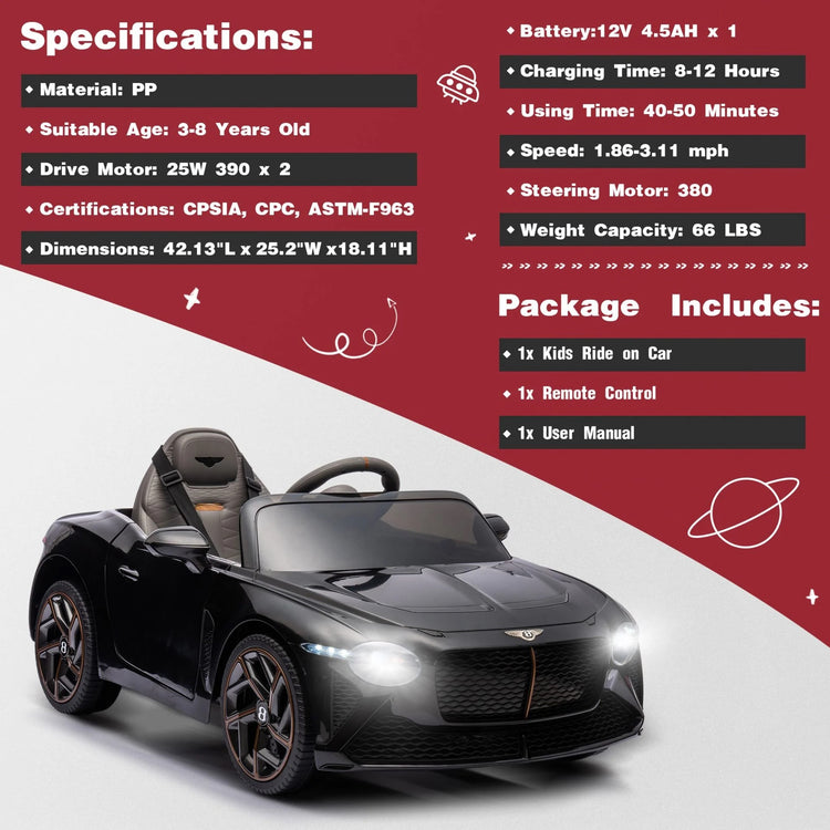 Tobbi 12V Licensed Bentley Bacalar Kids Electric Ride-on Car, Battery Powered Sports Car Toy with Remote Control