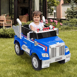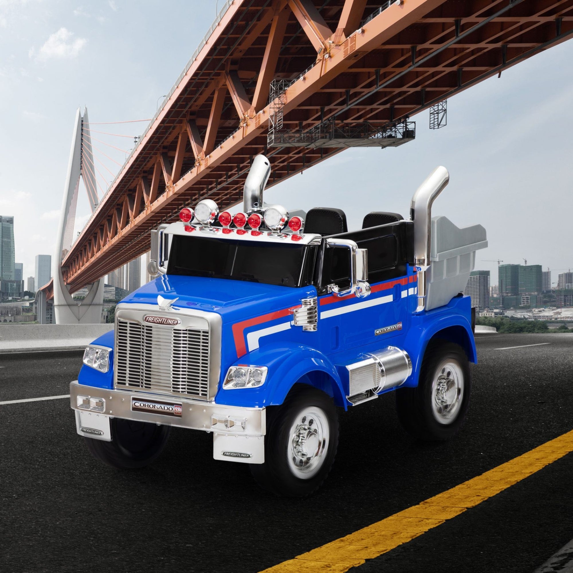 Tobbi 12V Toy Electric Licensed Freightliner, Kids Ride On Toy Car Battery Powered Dump Truck Tractor with Remote Control - Kids Electric Truck, Children's Toy Truck