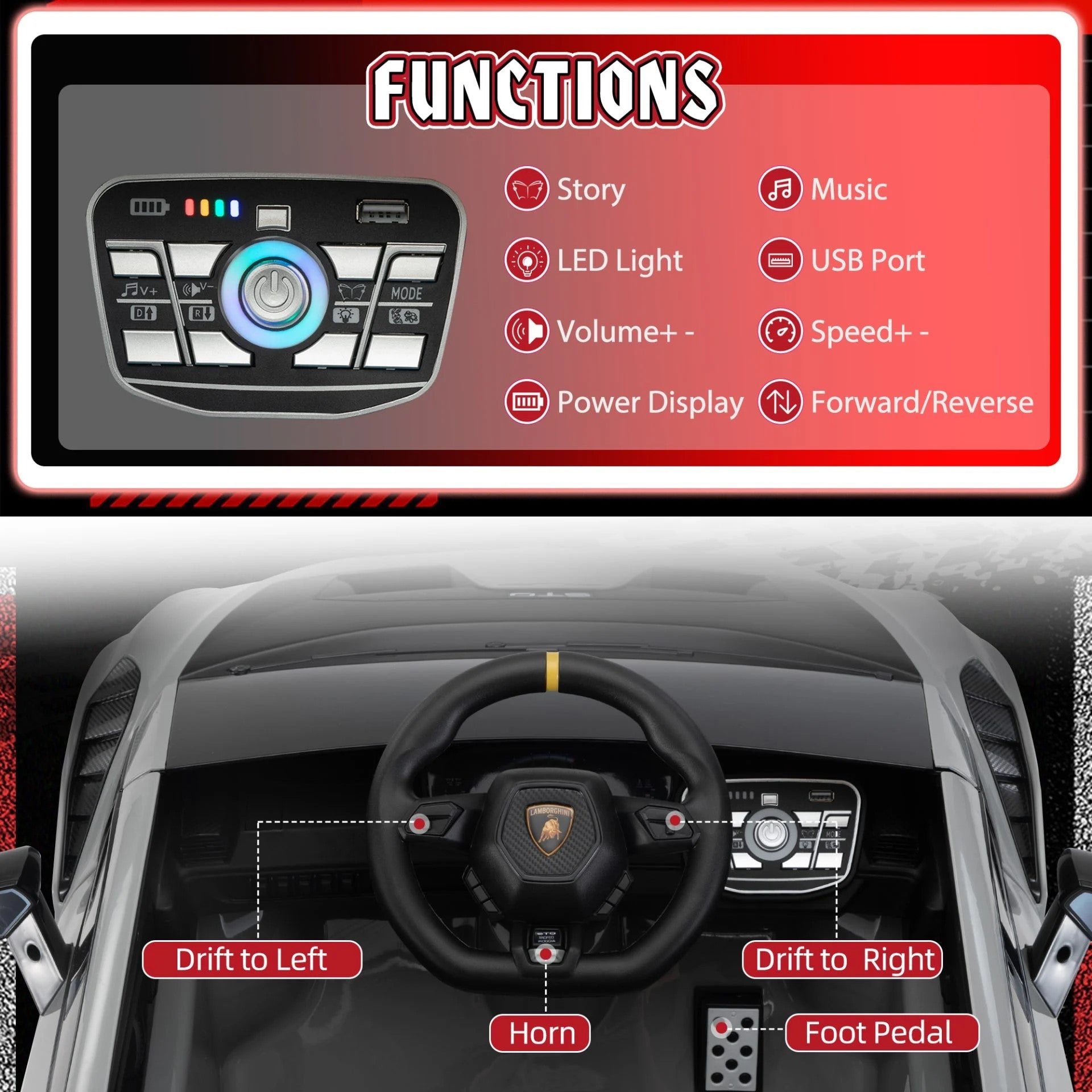 Tobbi 24V Licensed Lamborghini Kids Electric Ride On Car, Battery Powered Toy Car with Remote Control, Gray