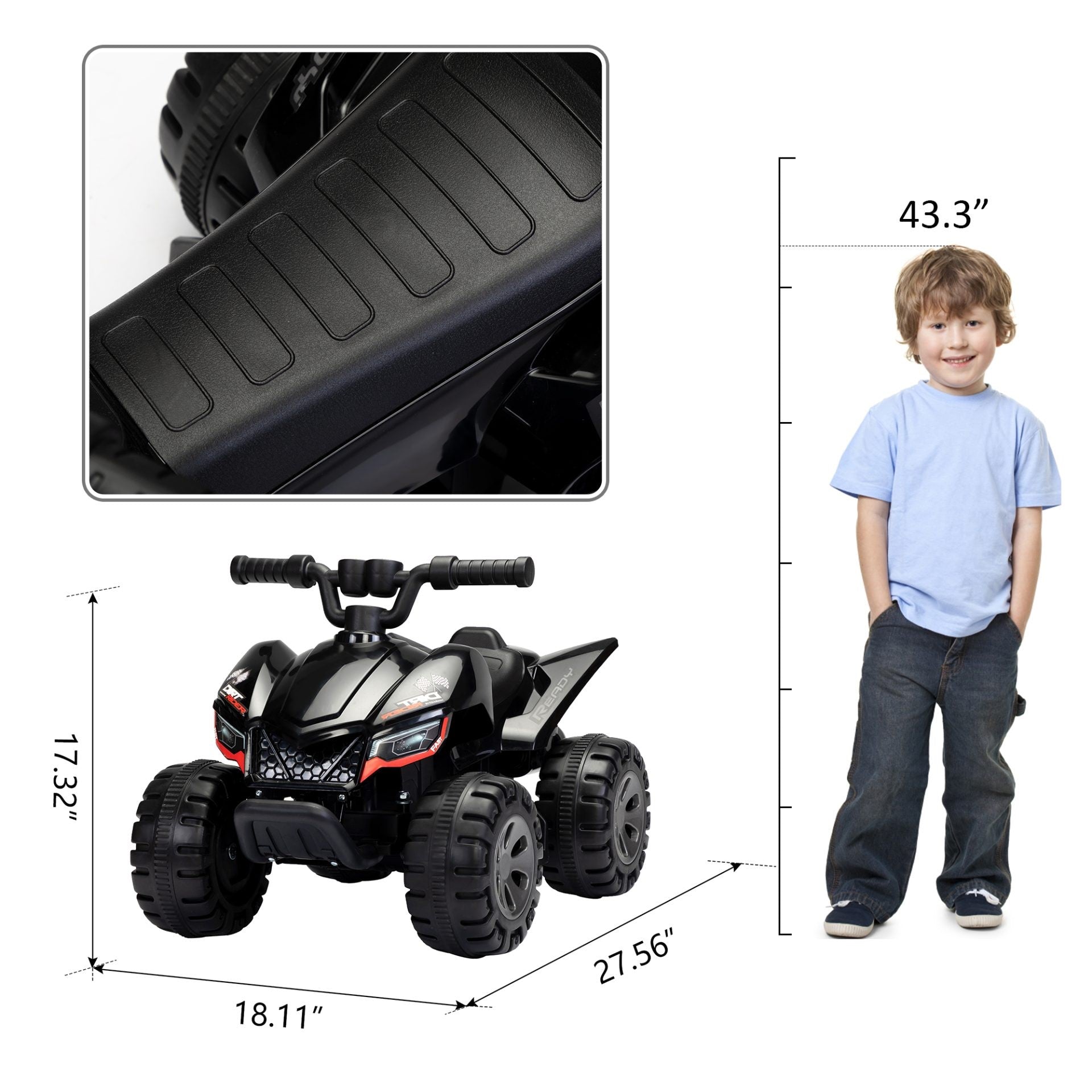 - This ATV Toy 4 Wheeler Quad Car is equipped with a 6V electric motor that provides a smooth and safe ride for your child.