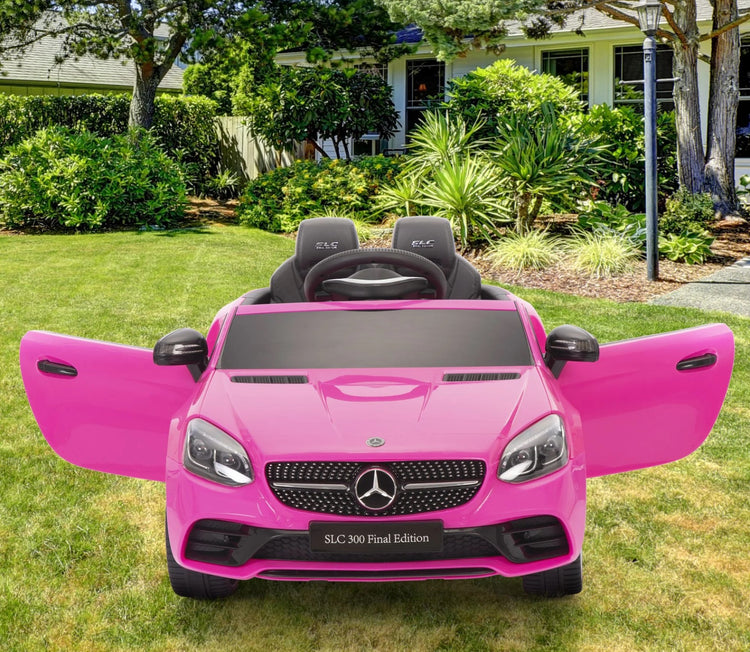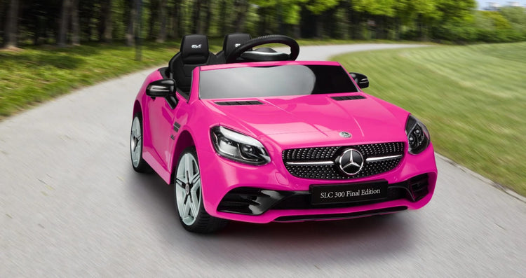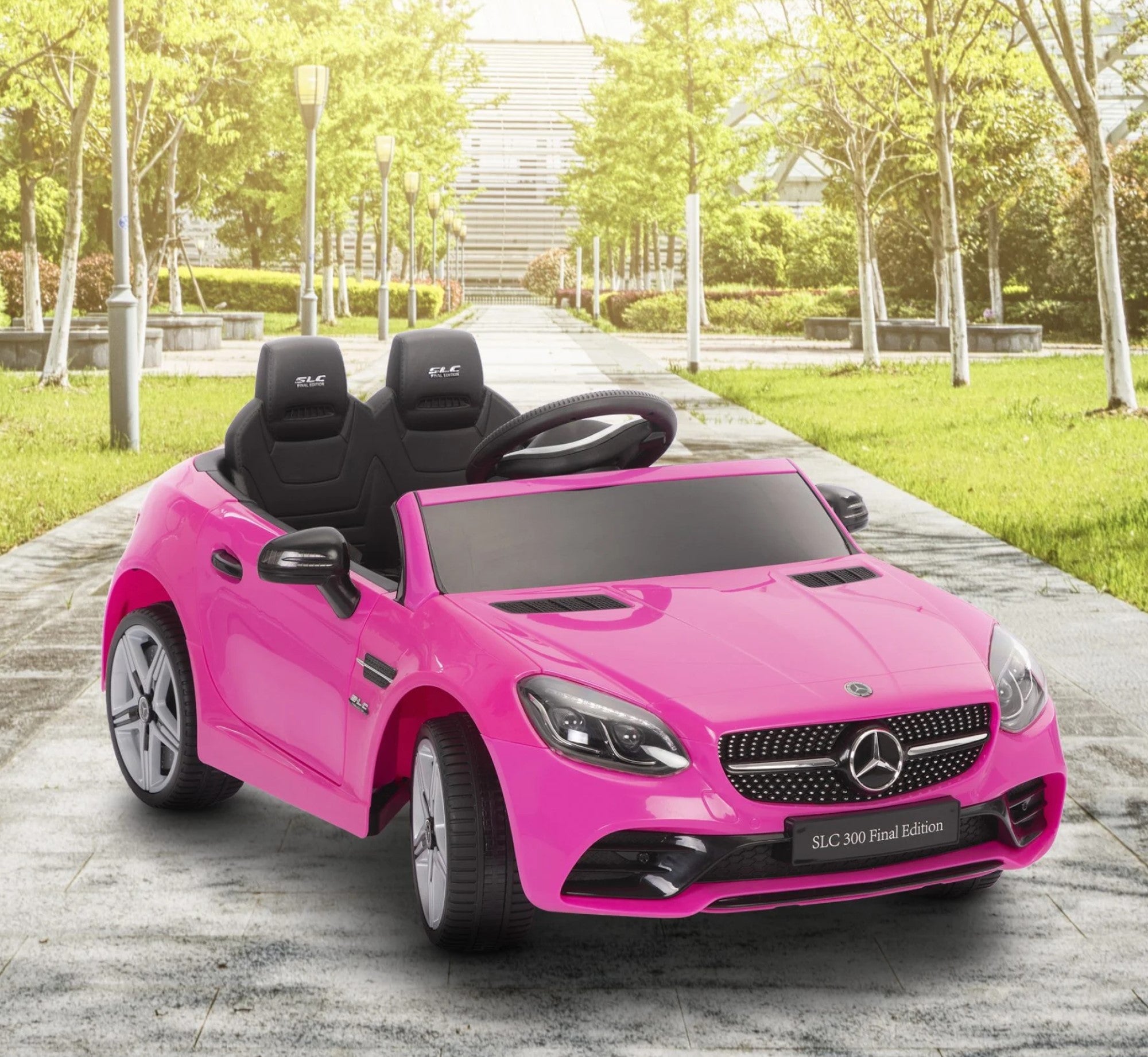 This pink Mercedes toy car is a great way to introduce your child to the world of cars and driving. It's a perfect replica of the Mercedes Benz SLC 300, which means it has all the features of a real car, including a sporty look and feel. Your child will love the thrill of driving their own Mercedes Benz 12v ride on car and feeling like a little adult.