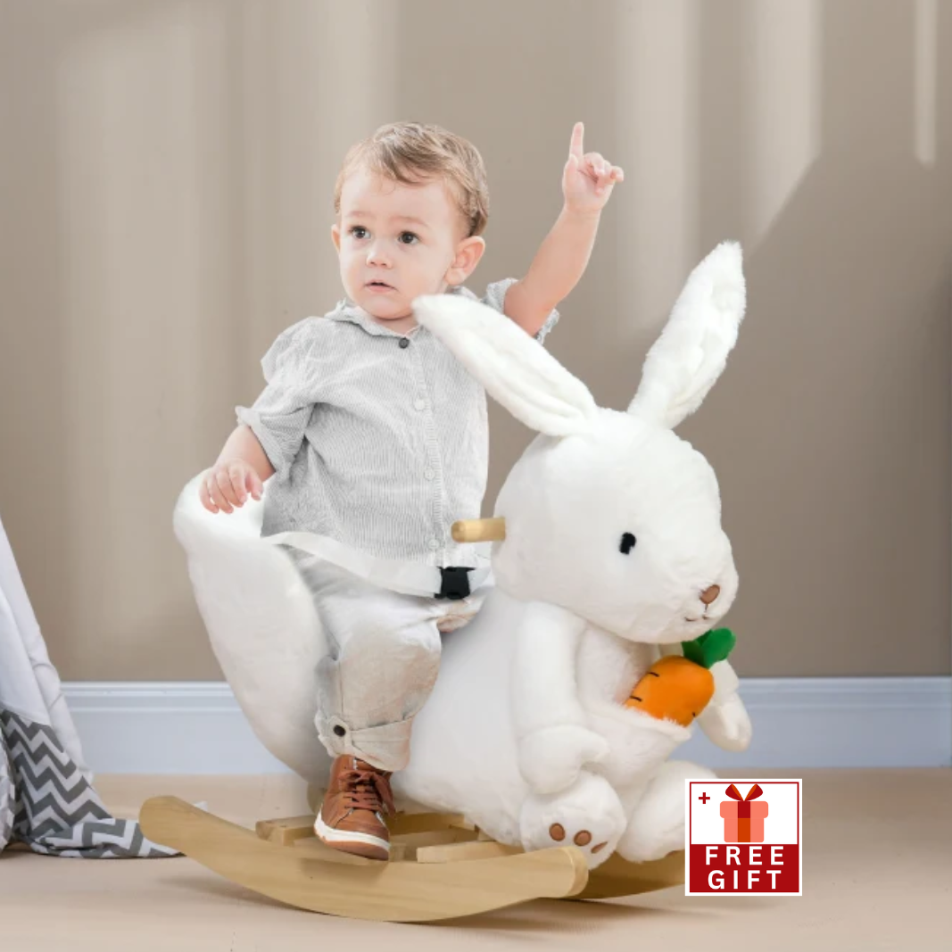- Plush Seat Toddler Rocking Horse: The lop-eared bunny rabbit design features a soft, padded seat with a high back and raised sides for comfort and safety.