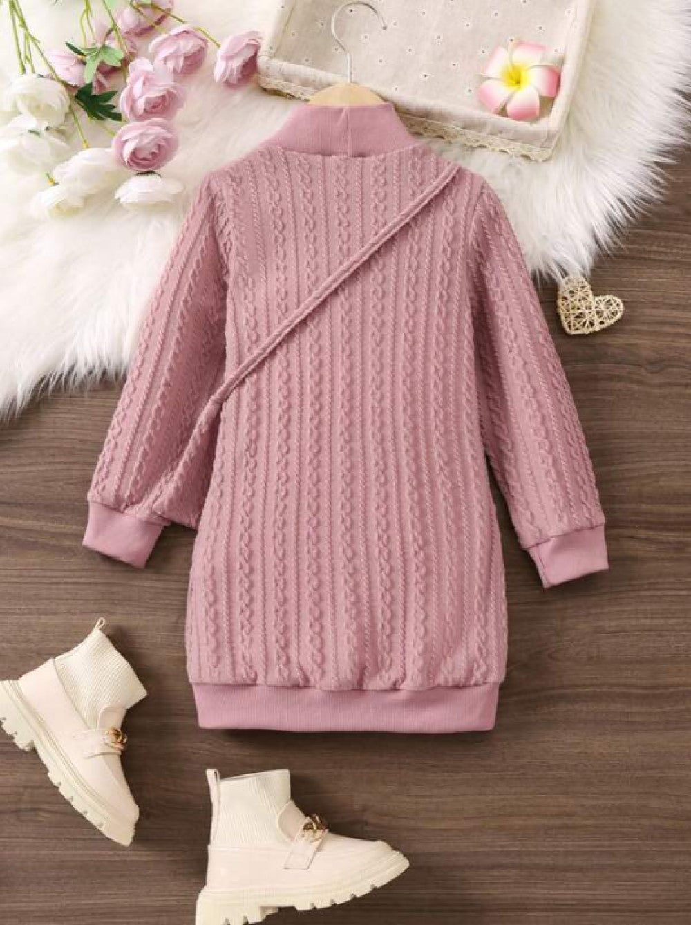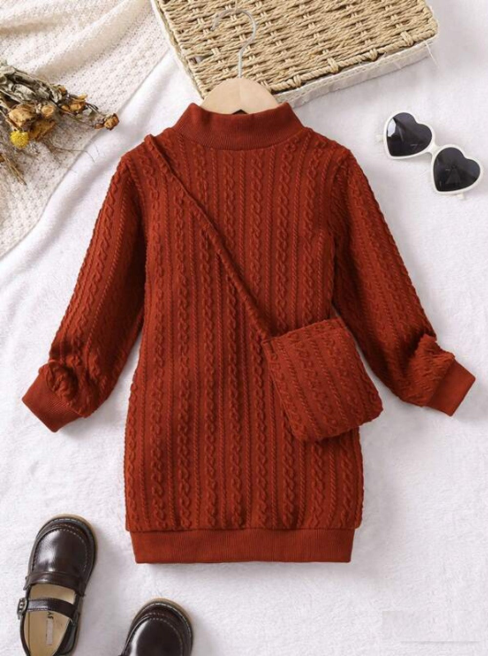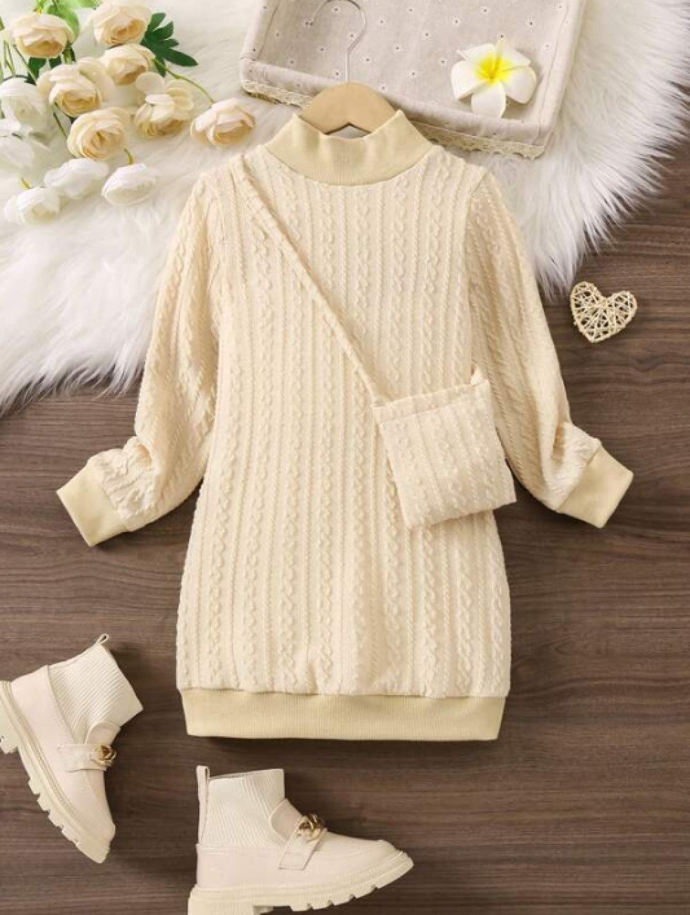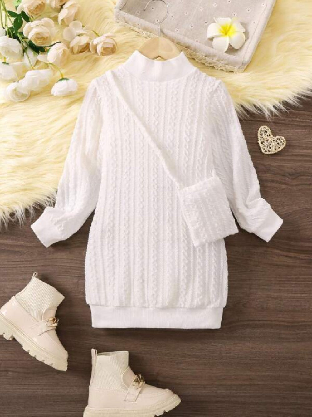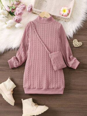 Young Girl Mock Neck Sweatshirt Dress & Bag