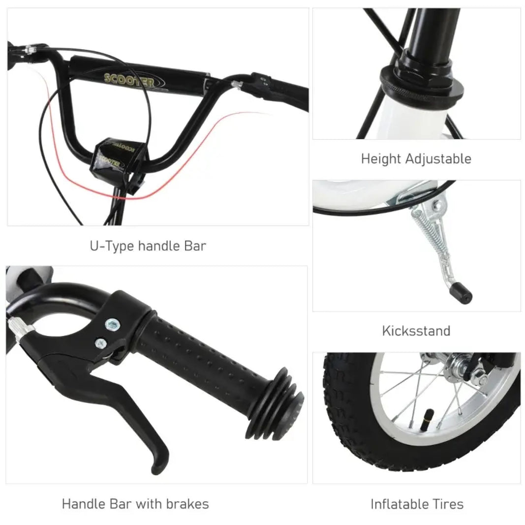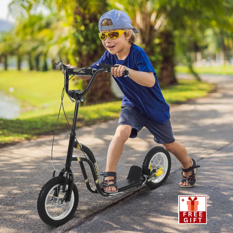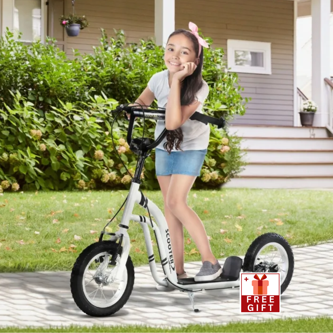Youth Scooter Front and Rear Caliper Dual Brakes 12-Inch Inflatable Front Wheel Ride On Toy For Age 5+