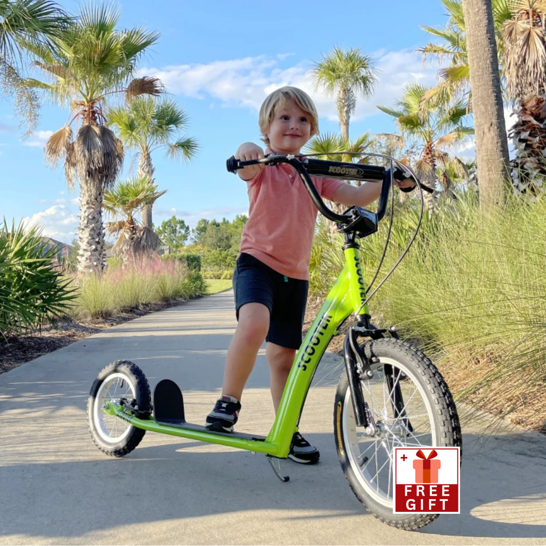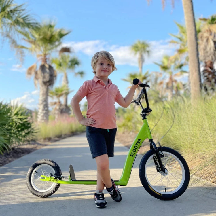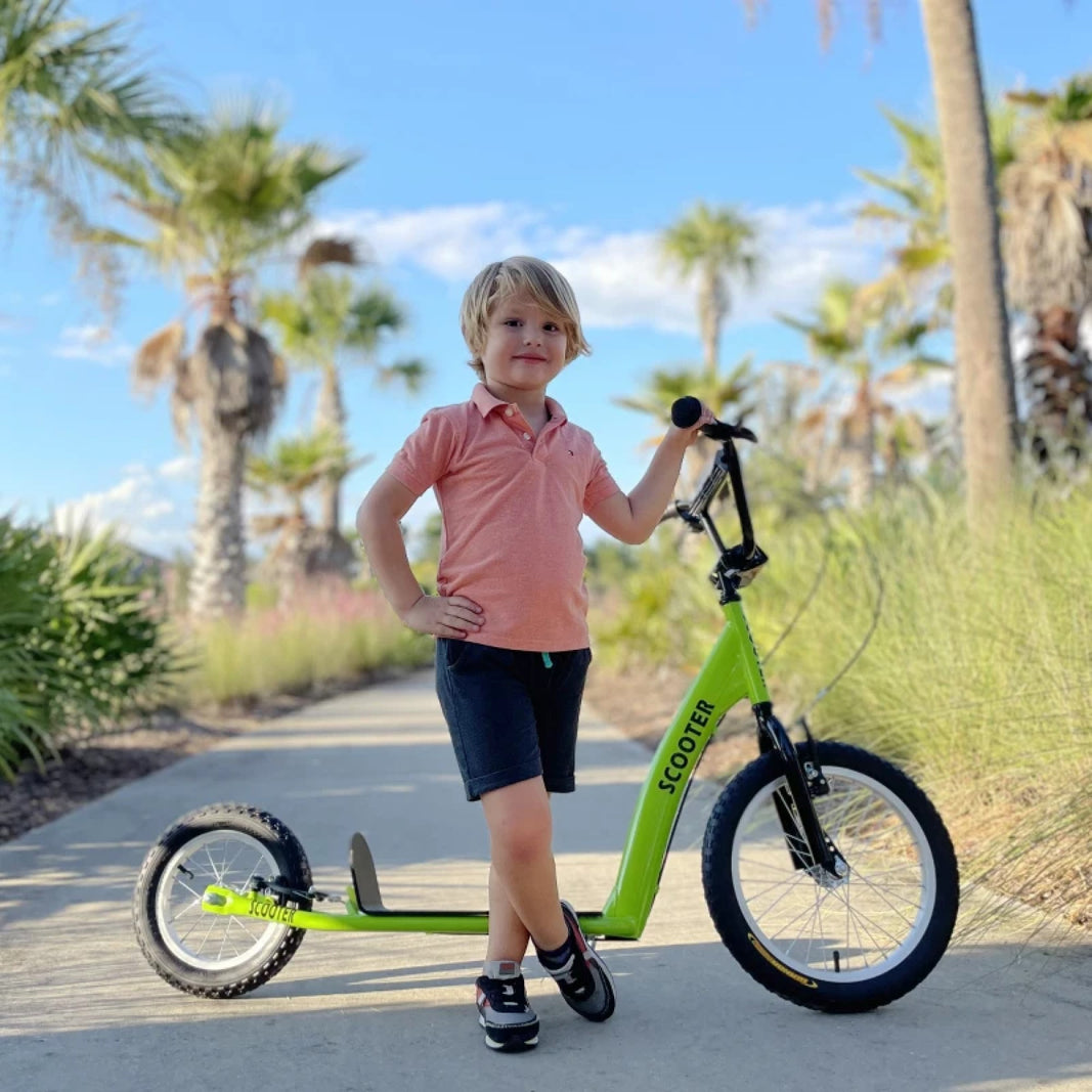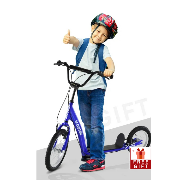 Youth Scooter Kick Scooter Ride-On Toy for Kids 5+ with Adjustable Handlebar 16" Front and 12" Rear Dual Brakes Inflatable Wheels